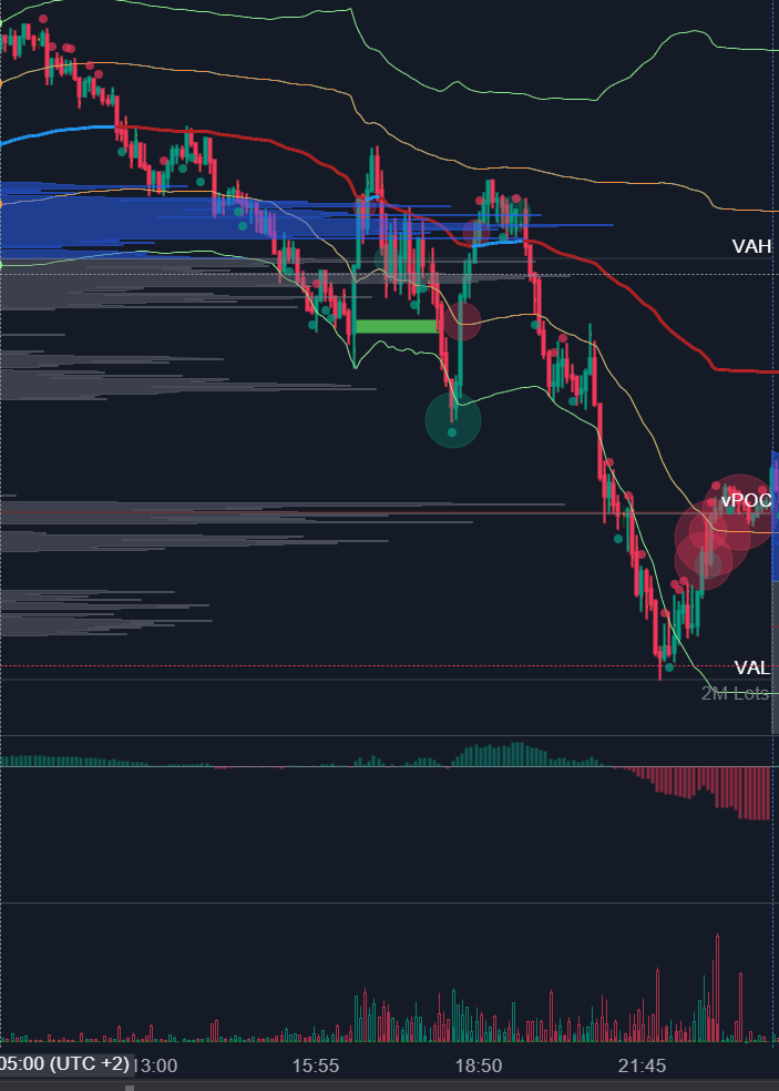El tramo 6760 / 6659 es puro miedo. Los Deltas son muy negativos, las velas limpias. Quien compró el viernes, liquidó el lunes. Los stops saltan, los márgenes se agotan….